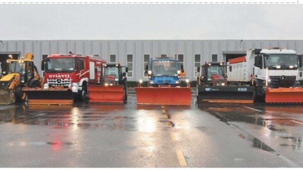 Greyder, kepçe, Unimog tuz serpme ve kar küreme aracı, kar küreme ve tuz serpme kamyonu, solüsyon atma aracı ve önlerinde kar küreme bıçağı olan traktörleri ile ekipmanlarını kış şartlarına göre hazırlayan ÇOSB Müdürlüğü, stratejik planlamasını yaptı.