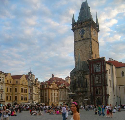 Şehrin en yoğun kalabalığına ev sahipliği yapan meydanda, dünyanın her yanından gelmiş, fotoğraf makinesiyle “o anı” bekleyen yüzlerce insanla karşılaşacaksınız. Meydanda, gotik tarzda inşa edilen Tin Kilisesi (Church of Our Lady before Týn), barok tarzıyla St.Nicholas Kilisesi ve Astronomik saat kulesi (Astronomical Clock) yer alıyor. Bu üçlüyü gezdikten sonra bir soluk almak isterseniz, meydanda bir çok kahve dükkanı bulabilirsiniz. Grand Café Praha’da, eğer çikolata seviyorsanız, sıcak bir çikolata içmenizi ya da dünyaca ünlü doyguni koyu renkli ve lezzetli Çek birasıyla (pivo) yanında getirilen atıştırmalıkları denemenizi önerebilirim.