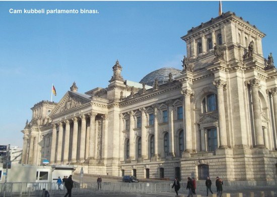 Reichstag denilen Alman Parlamentosu'nun ve Federal Meclis'in çalıştığı yapı da çok göz alıcı... Cam kubbeli olan bu yapıya randevu ile giriliyor. Eğer “Cam kubbeye çıkmayı başarabilirseniz bütün Berlin'i görebilirsiniz” deniliyor ama ben o şansı henüz yaşamadım. Bir kaç kez gittim, etrafında dolaştım, fotoğraflar çektim, bazı halka açık etkinliklerin ne olduğunu anlamaya çabaladım o kadar...