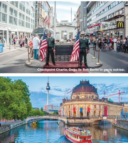 Berlin'in bölünmesi ve farklı ülkelerin kontroluna girmesi de bir ciddi tarihi dönem ama o da şimdi Check Point Charlie noktası ve turistler bu noktada dönemin giysileri içindeki asker modellerle para karşılığı fotoğraf çektiriyorlar.