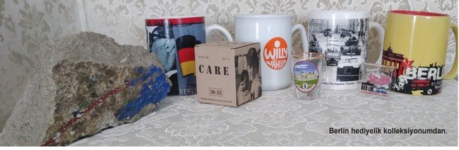 Berlin'den aldığım tarih kokan fincanlarım, duvar parçam, çeşitli minik objelerim, salonumda bana Berlin'i hatırlatan bir köşe oluşturuyorlar.