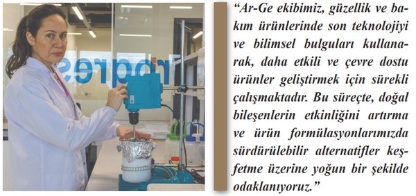 Ar-Ge faaliyetlerimize gelince, inovasyon bizim için merkezi bir değerdir. Sektörümüzdeki önemli Ar-Ge merkezlerinden biriyiz. Ar-Ge ekibimiz, güzellik ve bakım ürünlerinde son teknolojiyi ve bilimsel bulguları kullanarak, daha etkili ve çevre dostu ürünler geliştirmek için sürekli çalışmaktadır. Bu süreçte, doğal bileşenlerin etkinliğini artırma ve ürün formülasyonlarımızda sürdürülebilir alternatifler keşfetme üzerine yoğun bir şekilde odaklanıyoruz. Her bir yenilik, tüketici ihtiyaçlarını karşılamak ve aynı zamanda dünyamıza olan sorumluluğumuzu yerine getirmek amacıyla dikkatle değerlendiriliyor.