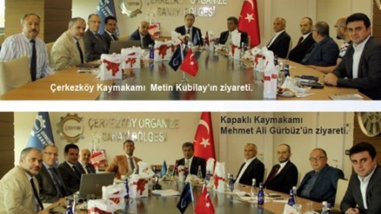 Çerkezköy Kaymakamı Metin Kubilay ve Kapaklı Kaymakamı Mehmet Ali Gürbüz , ÇOSB’yi ziyaret etti. Her iki ilçe kaymakamı da ÇOSB yeni yönetim kurulu başkanı Eyüp Sözdinler ve yönetim kurulu üyelerini göreve yeni seçilmelerinden dolayı tebrik ettiler. ÇOSB Yönetim Kurulu Başkanı Eyüp Sözdinler ziyaretlerinden dolayı ilçe kaymakamlarına teşekkürlerini ifade etti.