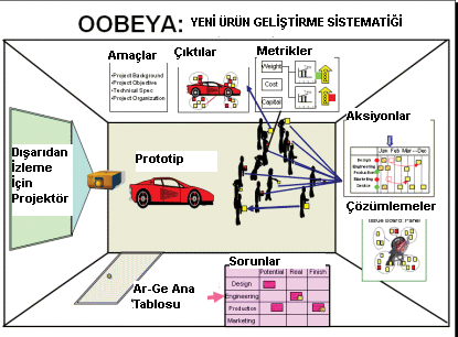 Obeya Japonca “Büyük Oda” anlamına gelen uluslararası literatürde “Obeya, O-obeya veya Big Room” olarak anılan son derece etkili Yeni Ürün Geliştirme sürecine ait bir metodolojidir. Türkiye’deki uygulamalarına baktığımızda son derece yaratıcı insanlarımızın yeni ürün geliştirme süreci dışında stok yönetimi, proje yönetimi, ERP süreçlerinin devreye alınmasında bir yöntem olarak da kullanıldıklarına tanık olmaktayız.