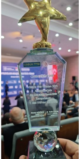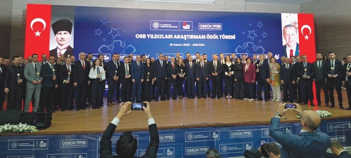 Çerkezköy OSB, Organize Sanayi Bölgeleri Üst Kuruluşu (OSBÜK) tarafından düzenlenen 2025 OSB Yıldızları Araştırması’nda ödüle layık görüldü. Bu yıl beşincisi düzenlenen OSB Yıldızları Araştırması Ödül Töreni, T.C. Sanayi ve Teknoloji Bakanı Mehmet Kacır’ın katılımıyla gerçekleştirildi.