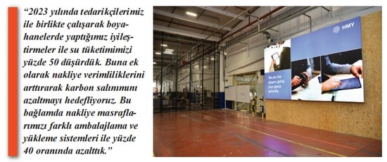 - Bu konuda en önemli gördüğümüz konulardan biri su tüketimi. Özellikle bölgemizdeki yer altı su rezervlerinin azaldığını hepimiz biliyoruz. 2023 yılında tedarikçilerimiz ile birlikte çalışarak boyahane operasyonlarımızda yaptığımız iyileştirmeler ile su tüketimimizi yüzde 50 düşürdük. Fabrikamızda tüketilen suyun yüzde 90’ı boyahanede tüketilmektedir. Buna ek olarak nakliye verimliliklerini arttırarak karbon salınımını azaltmayı hedefliyoruz. Bu bağlamda nakliye masraflarımızı farklı ambalajlama ve yükleme sistemleri ile yüzde 40 oranında azalttık. Buna ek olarak da kağıt ve karton tüketimlerini azaltmaya çalışıyoruz. Şu anda ise gündemimizde güneş enerjisi yatırımı söz konusu.