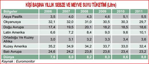 Bizde yüzde 100 değil nektar daha çok tüketilir. Onda da şeftali, vişne, kayısı suyu biçiminde bir sıralama vardır. Yüzde 70 oranında bunlar tüketilmektedir. Portakalın ihracat potansiyeli çok yüksektir.
