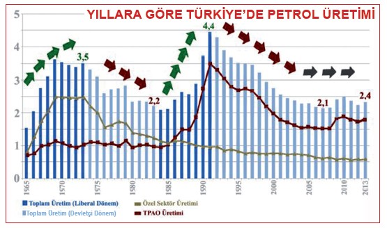 2014 yılında Türkiye Petrol üretimi 2.4 Milyon Ton iken 1999 yılında 4.4 Milyon Ton olmuş. Entersan değil mi? Türkiye petrol fiyatının zirvede olduğu dönemde petrol üretimini azaltmış. Buradan da ne komplo teorileri çıkar değil mi?